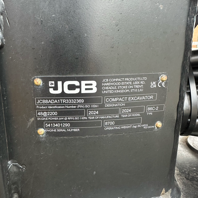 JCB 86C-2. - Hydraulic Quickhitch. - 3x Buckets. - Hammer Pipework. - A/C. - Rubber Tracks. - Amber & Green Beacon. - Very good tracks